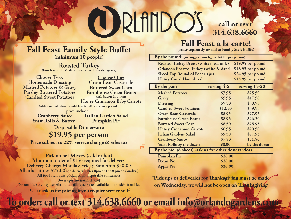 Seasonal Menus & Current News Orlando’s is the exclusive caterer for The Grand Hall on Chouteau!click here for more info Orlando’s is the exclusive caterer for The Grand Ballroom on Locust!click here for more info